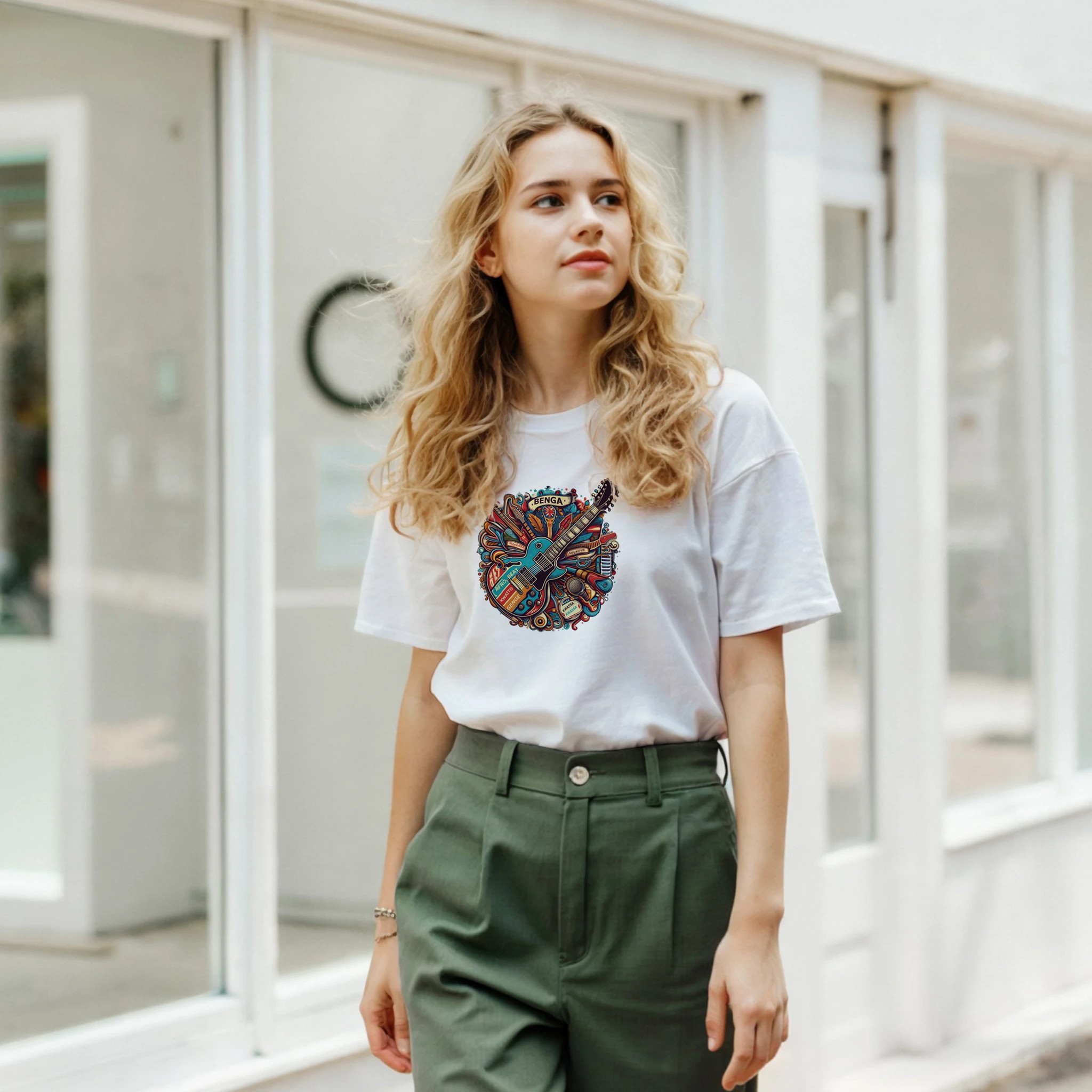 Wear your passion for rhythm and heritage proudly! The intricate illustration captures the spirit of Africa’s diverse sounds, bringing a symphony of styles to your wardrobe. With its bold colors and artistic flair, this t-shirt is not just clothing; it’s a statement piece that celebrates your love for music and culture.