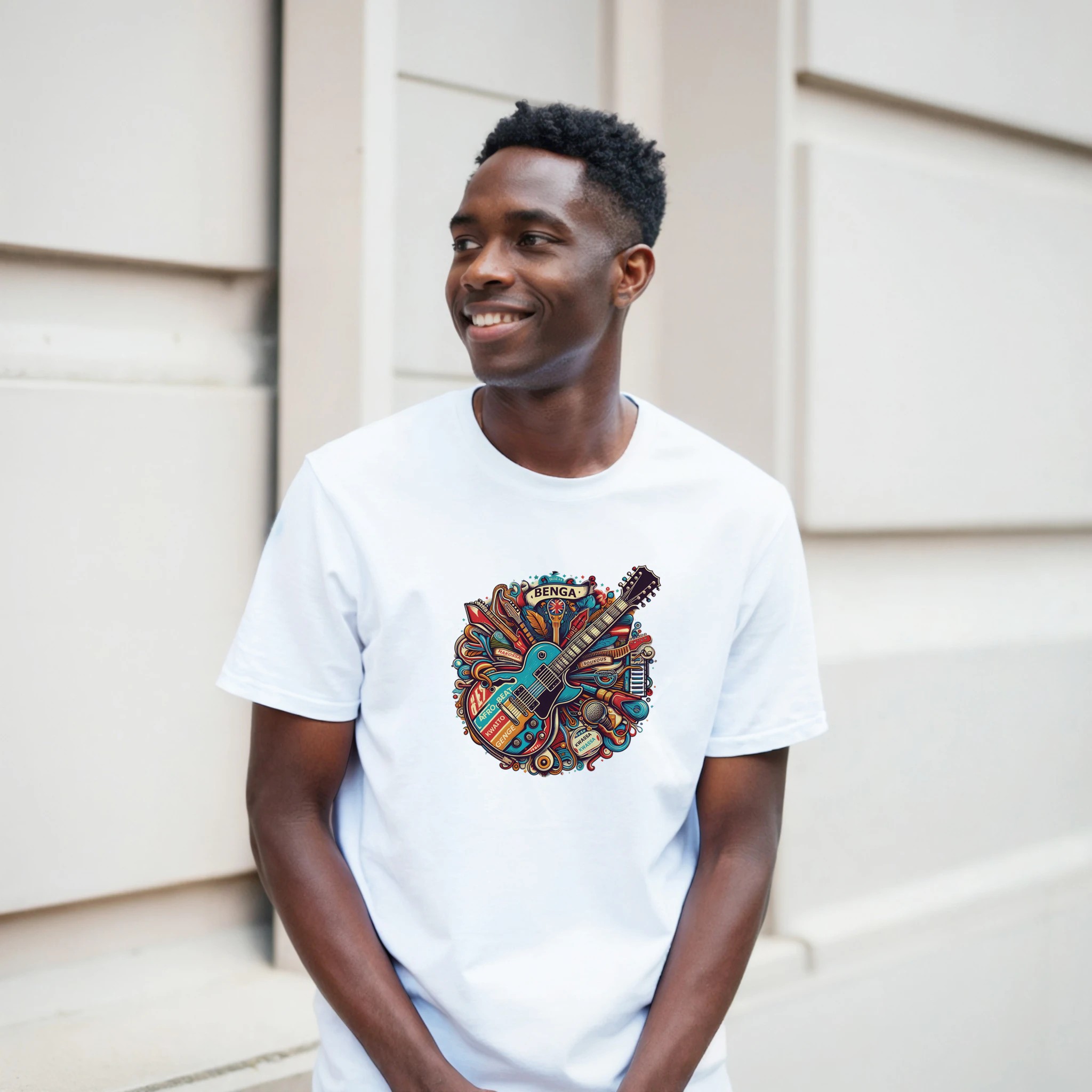 Celebrate the vibrant tapestry of African music with our stunning African Music Genres T-Shirt! This colorful tee showcases a dynamic guitar graphic intertwined with iconic genre names like Benga, Makossa, Soukous, and Afro Beat, making it a perfect tribute for music lovers and cultural enthusiasts.