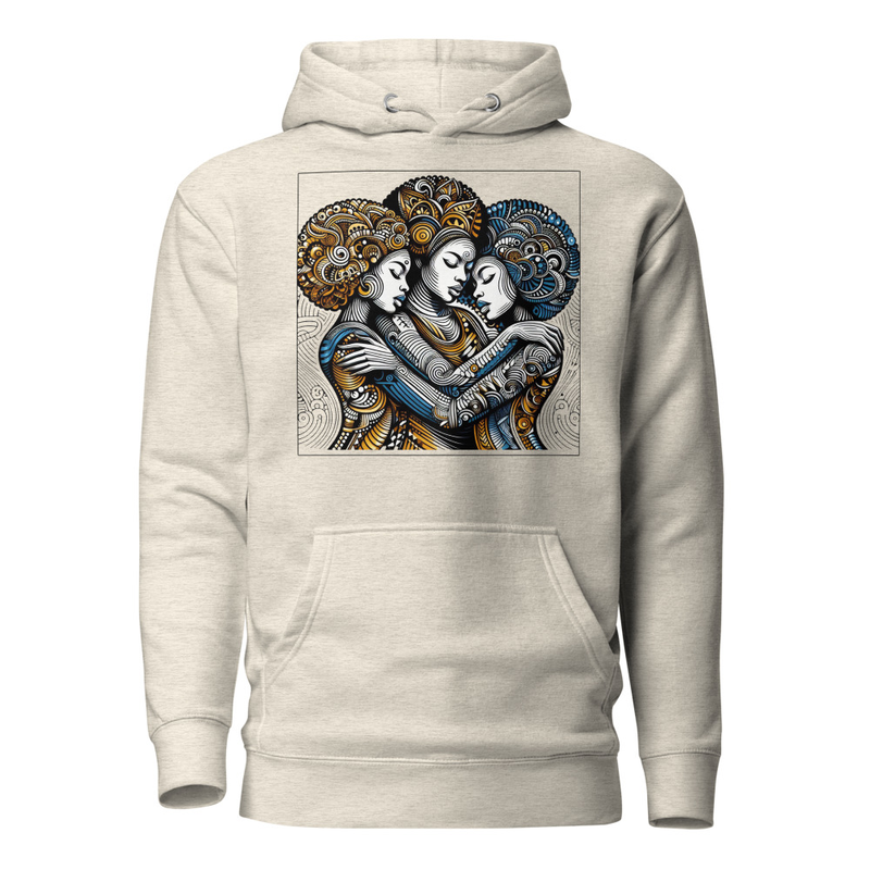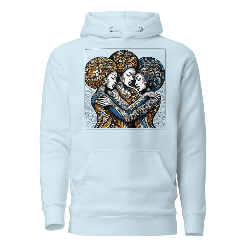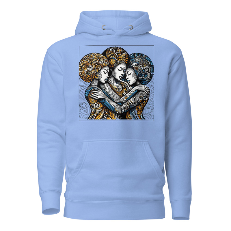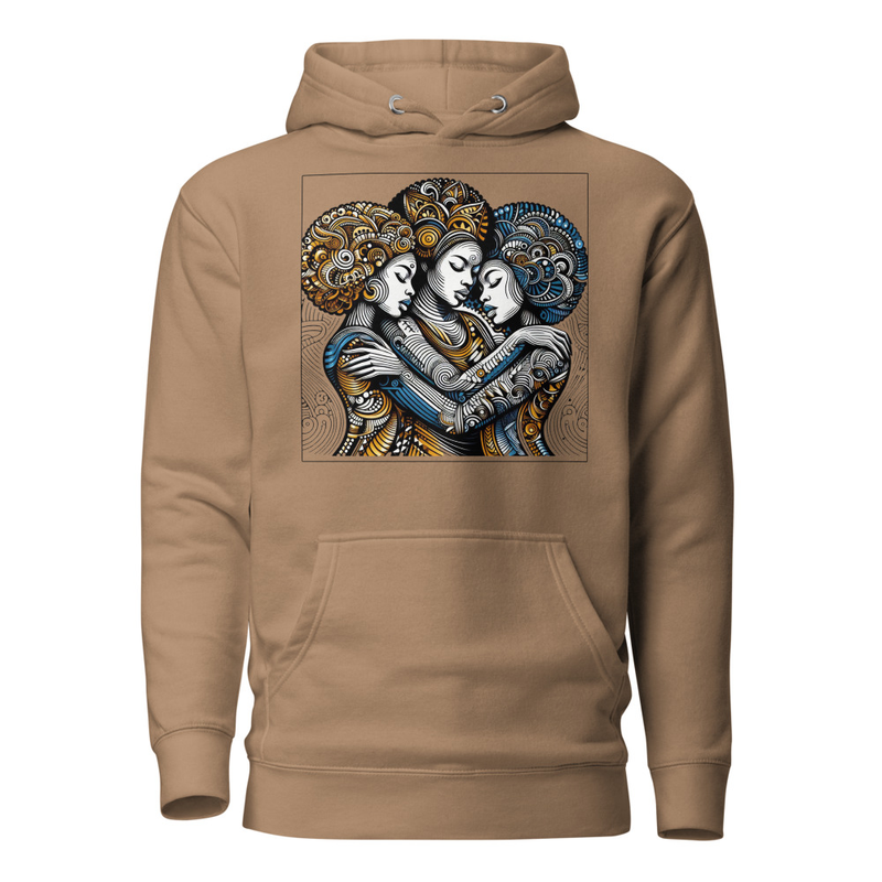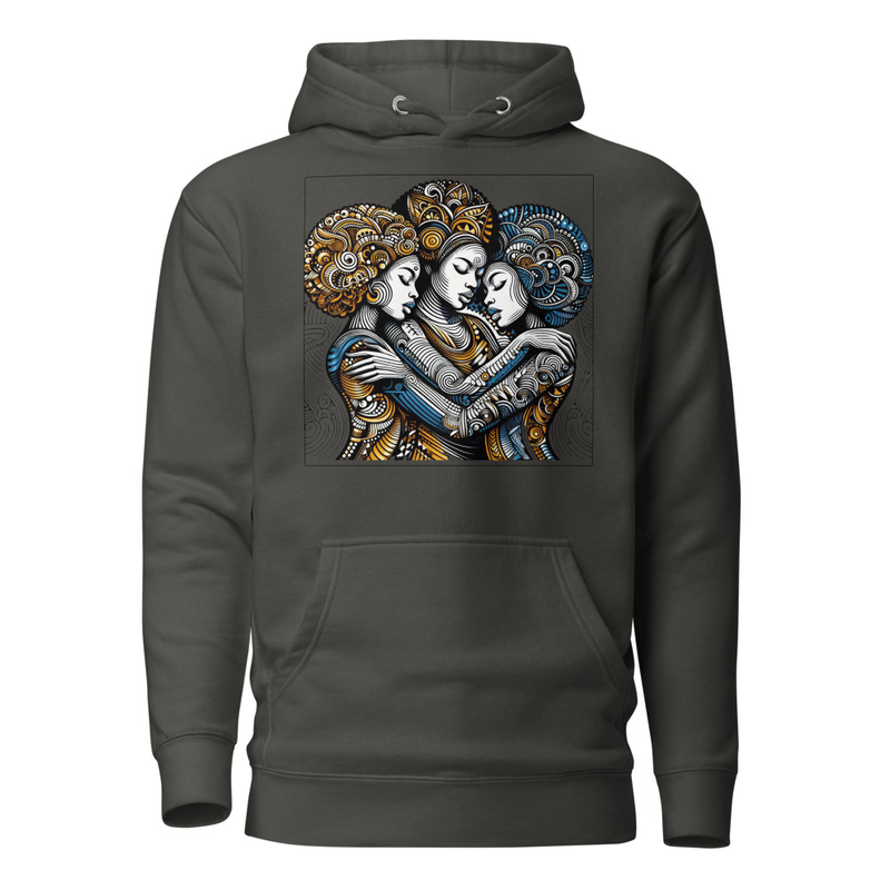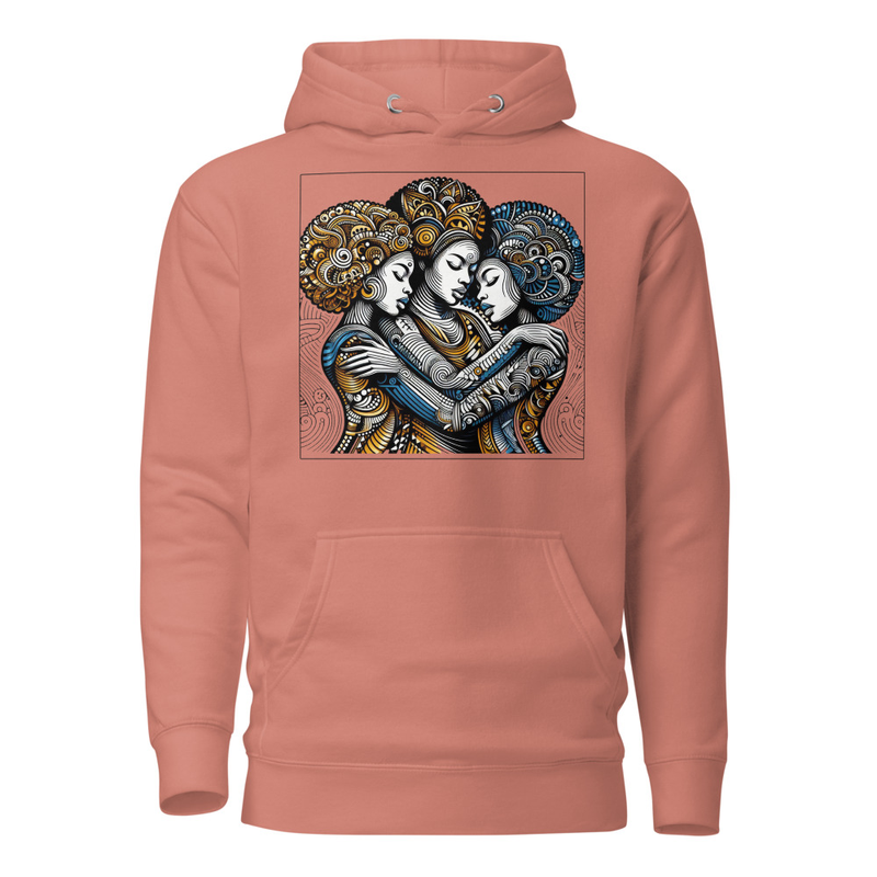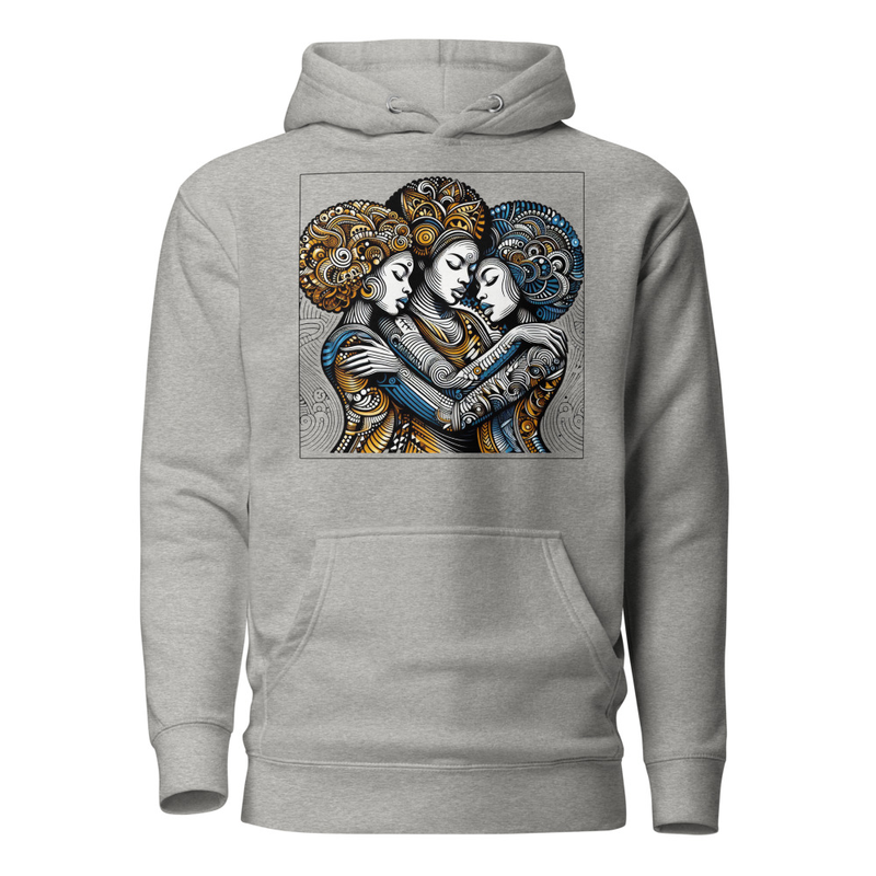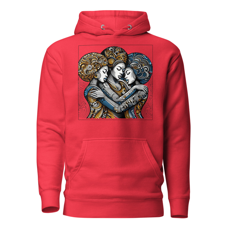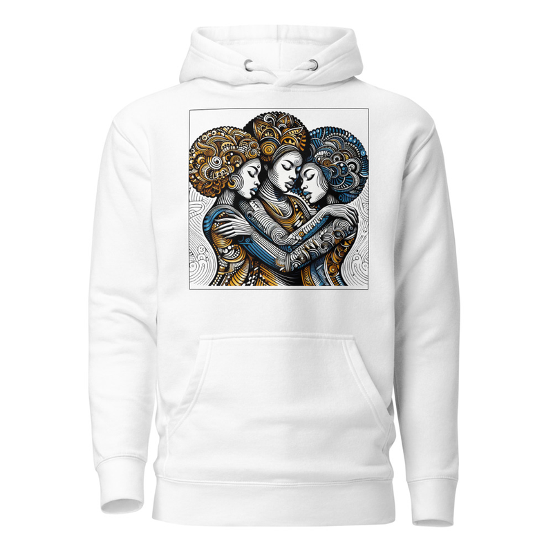 Fashion & ApparelWrap yourself in the warmth of sisterhood and empowerment with our Embracing Women Hoodie! This cozy hoodie is designed with an intricate illustration of three women embracing, adorned with detailed patterns that celebrate unity and strength.